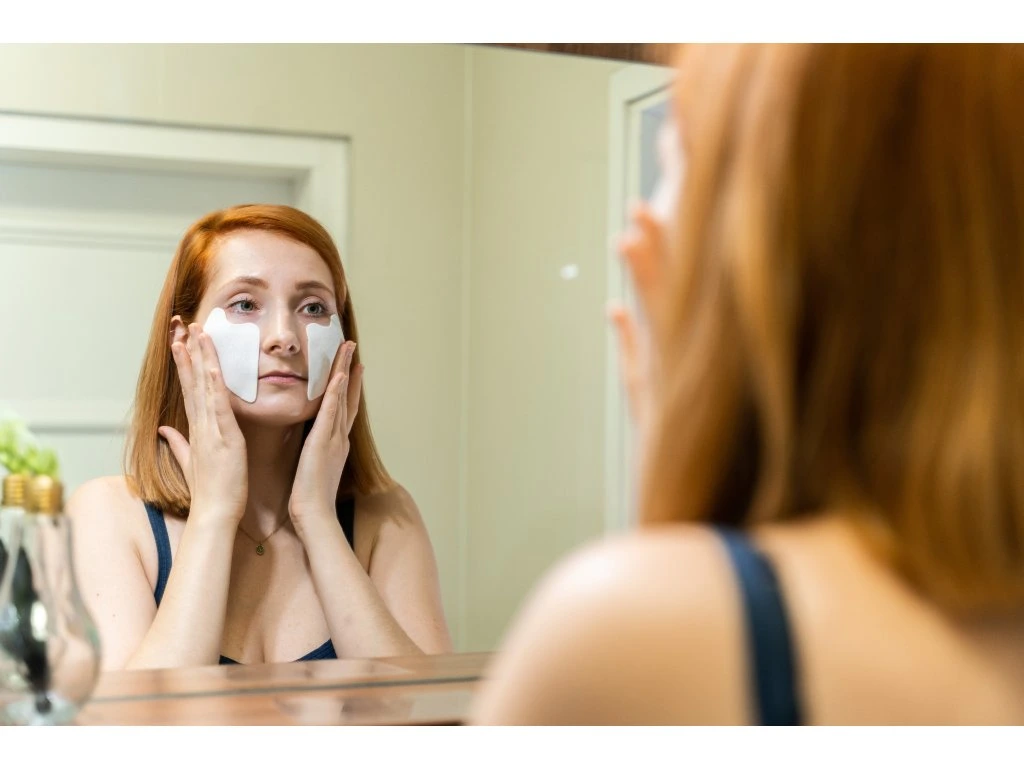 2. Odstráňte ochrannú fóliu a priložte hydrogélové náplasti na líca alebo pod oči.